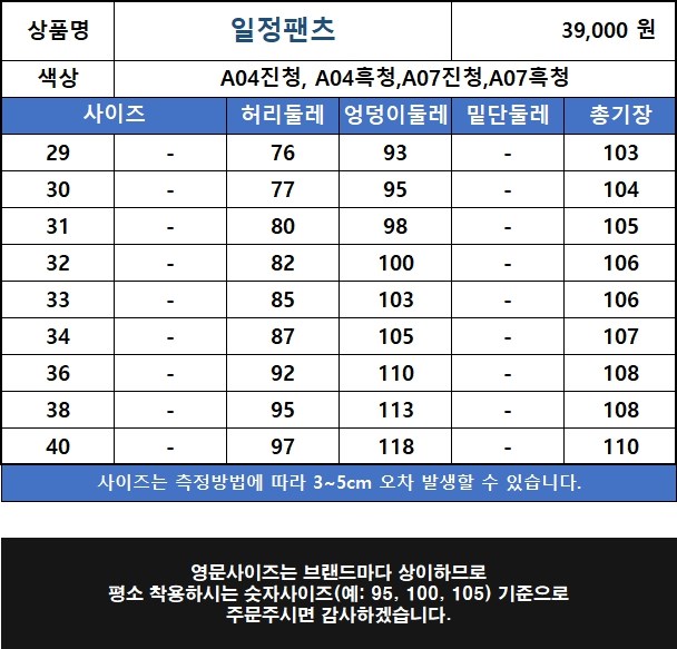 A04진청, A04흑청,A07진청,A07흑청